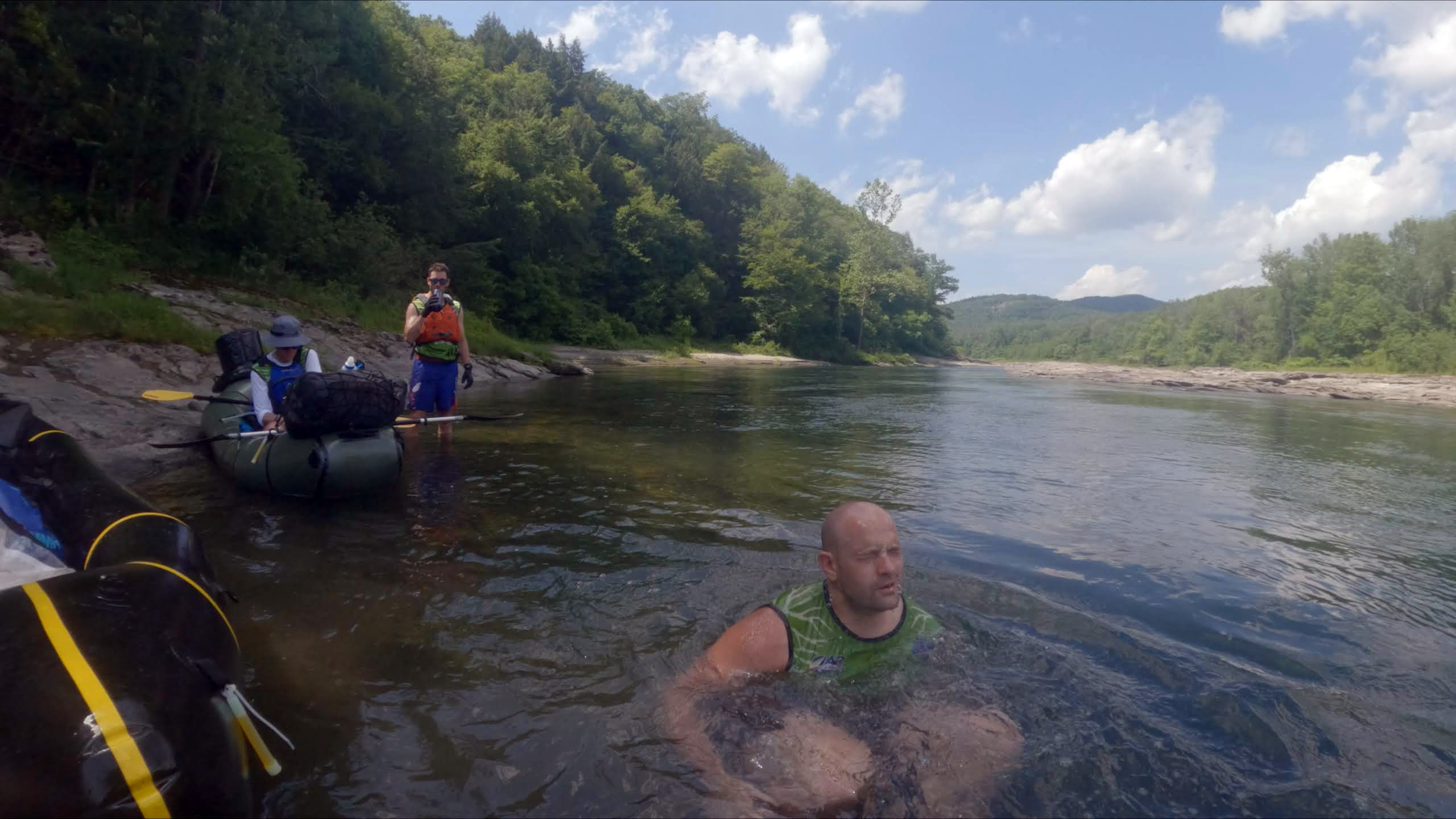 I paddled with Ryan, JP took Jason, and nobody flipped. When we arrived at the takeout, Abby was waiting with news that Conrad had started riding his red bike - just hearing stories from the outside world after 2.5 days of racing was an incredible mental boost.