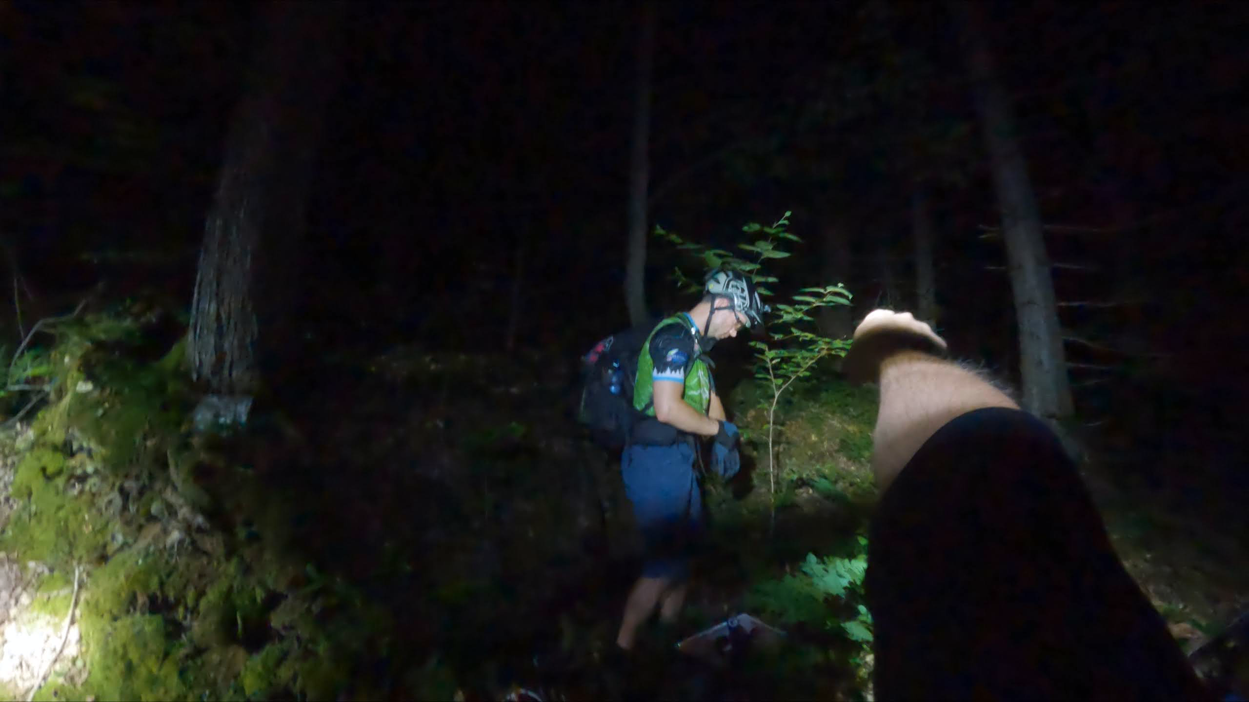 Devil’s Throat. I barely understand how this was a walking trail, let alone something we were expected to bike. Since we couldn’t bushwhack, we carried our bikes down this nightmare descent in the dark, swearing creatively until we found stairs and the blessed relief of Upper Noodles trail. Another team was there swearing equally creatively - they hadn’t even found the top checkpoints yet.